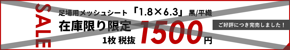 メッシュの網地の材料等は合成繊維でかつ難燃性のもの又は防炎加工を施したもの、日本工業規格A8952(建築工事用シート)に定める防炎性を有するものである必要があります。